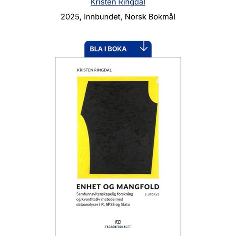 Kristen Ringdal Enhet og Mangfold lærebok innen økonomi og administrasjon. Boken dekker samfunnsvitenskapelig forskning og kvantitativ metode, 3. utgave. Utgitt av Fagbokforlaget, ISBN 978-82-450-1326-3.