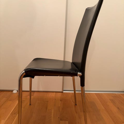 Selger 8 stk spise stoler fra et italiensk merke Ims Clmfort living. Retro stil med kunst skinn og krom. Det er noen bruksmerker på kantene, men helhetlig er de i fin stand. 50 per stk
