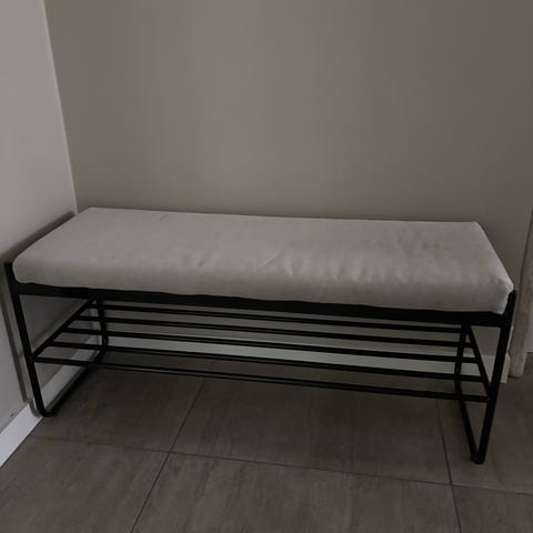 Benk som passer godt der en gjerne vil sitte ned en liten stund. F.eks for å ta på sko eller strømper.