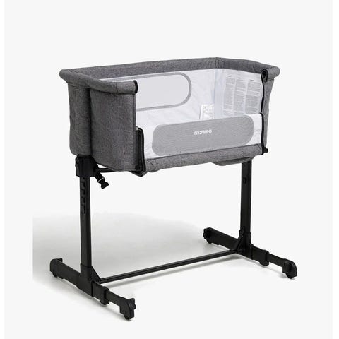 Chicco Bedside crib barneseng. Barneseng designet for å plasseres ved siden av foreldreseng, gir enkel tilgang til barnet. Laget med mørk blå stoff og nettingpaneler for ventilasjon og oversikt. Stabil ramme med justerbare ben for tilpasning til ulike senghøyder.