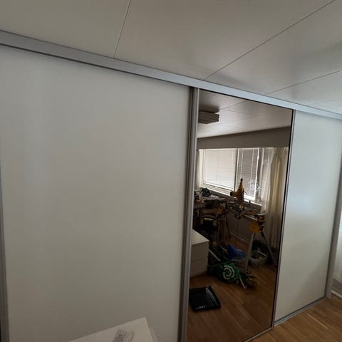 Selger skyvedørene til garderobe billig da de sto igjen i leiligheten jeg har flyttet inn i.