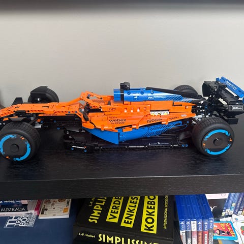LEGO Technic McLaren Formel 1 bil med detaljerte funksjoner og autentisk design. Settet inkluderer en modell av en Formel 1 bil med oransje og svart farge, laget i plastmateriale. Passer for byggere og samlere som er interessert i tekniske konstruksjoner og motorsport.