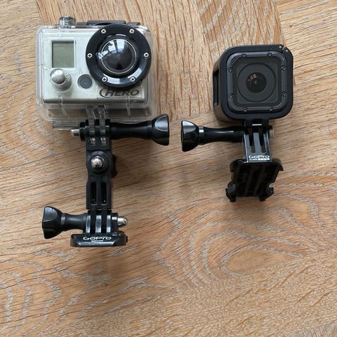GoPro actionkamera med deksel og tilbehør.