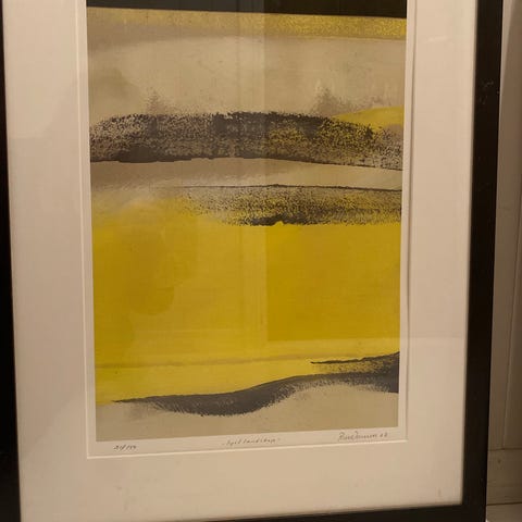 Horisont i blått av Per Didrik Wærner selges. Helt nytt, og selges fordi vi ikke får brukt det likevel. Teknikken i bildet kaller Per Didrik Wærner selv for Grafisk teknikk - blandingsteknikk.