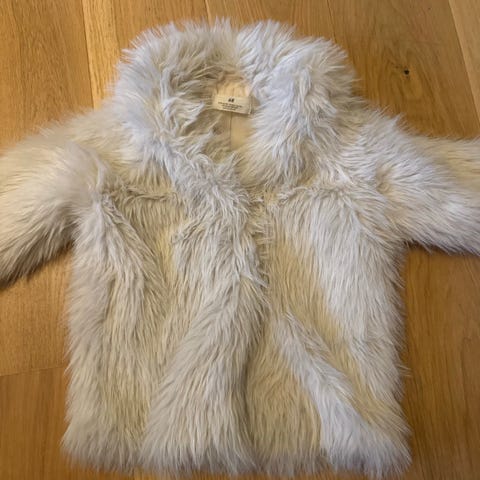 H&M fuskepelsjakke for barn i størrelse 128, farge brun, designet for jenter. Laget av kunstig pelsmateriale.