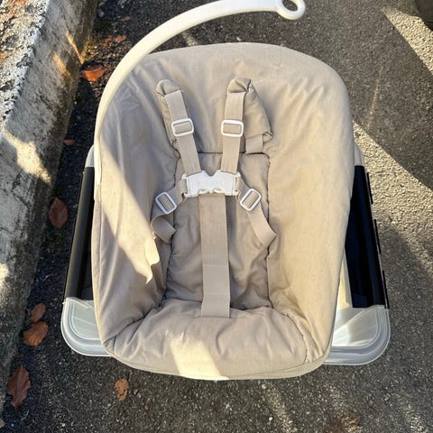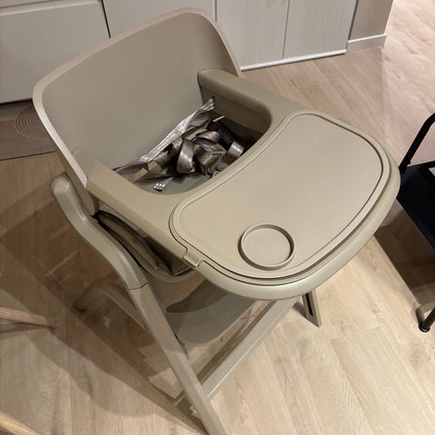 Stokke høy barnestol. Designet for barn, egnet for bruk ved spisebord eller andre bord. Gir støtte og komfort for barn under måltider eller aktiviteter. Dette er kun del 2/2