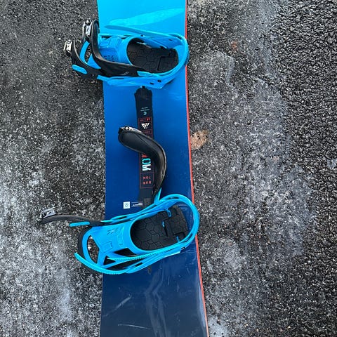 K2 snowboard med union bindinger selges. Normal slitasje i kanter og under brettet. Lengde 144.