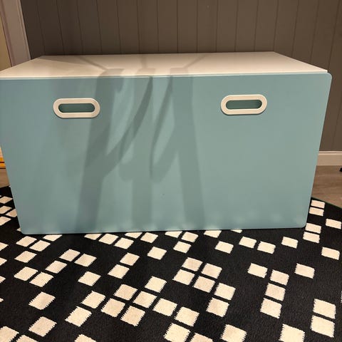 IKEA barnemøbel oppbevaringskasse blå og hvit