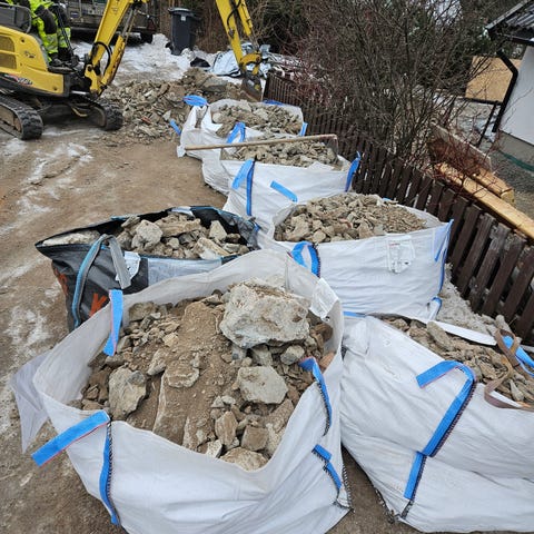 Vi gir bort overskuddsjord. Jorden består hovedsakelig av vanlig jord/masser med noe stein og røtter. Egner seg fint til oppfylling, planering eller lignende (ikke siktet hagejord). Vi har gravd i hagen i vinter, så bildet kan man se litt hvordan massen er. Det ligger egt under en plen i dag.