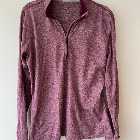 Nike treningsgenser for dame i størrelse XL. Genseren er lilla og egnet for ulike typer trening. Den har lang erm med tommelhull for bedre passform og komfort under aktivitet.
