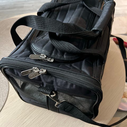 Brukt til chihuahua. Brukt på fly i kabin uten problemer.