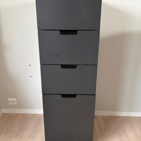 Nordli kommoder fra IKEA selges. To moduler. Pent brukt, men med noen merker. Farge antrasitt. Store gode skuffer med innebygd demping. Liten modul har mål 40x54. Stor modul har mål 80x54. Må hentes. Ny pris er kr1295 for liten modul. Ny pris for stor modul er kr1495. Selges helst samlet. Må hentes