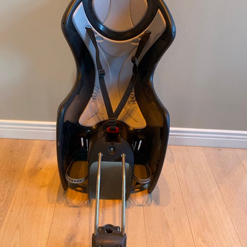 Pent brukt Pivial junior sykkelsete til barn. Monteres enkelt på bagasjebrett med to klemmer. Passer de fleste typer bagasjebrett. Barnet sitter komfortabelt og har håndtak foran til å holde i og ryggstøtte bak.
