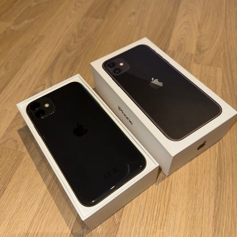 Pent brukt iPhone 12 med 128 GB lagringskapasitet i svart farge.