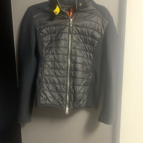 Parajumpers Warm Up jakke i størrelse M, farge svart, laget av bomull. Jakken har en kombinasjon av materialer med vattert front og rygg, samt strikkede ermer og sideseksjoner. Den har glidelås foran og justerbar ermekant med hull til tommel. Jakken er designet for utendørs bruk.