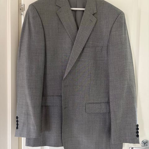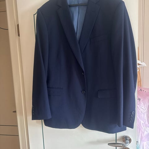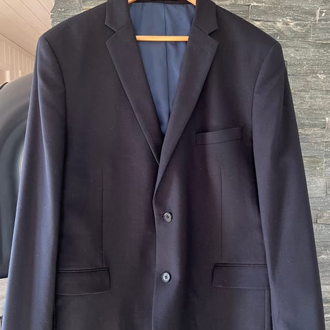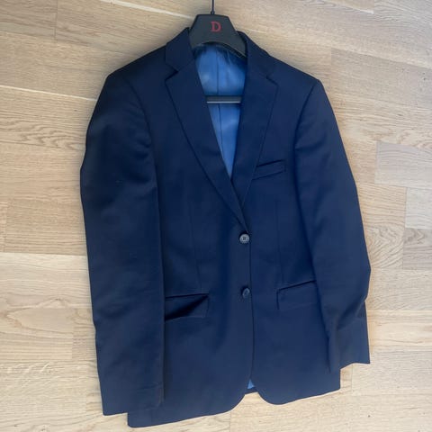 Mørk blå dressjakke fra Dressmann. Str 56 Slimfit. Inneholder 45% ull.