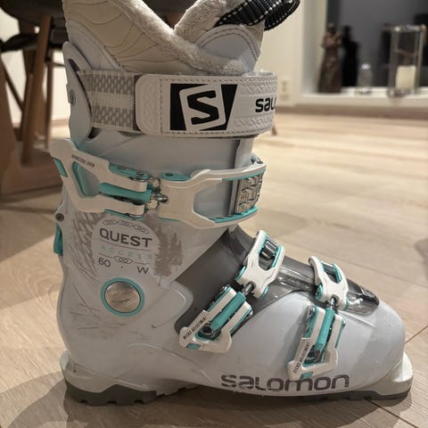 Dynafit skistøvler fargene hvit, rosa og lilla. Støvlene har flere spenner for justering og god passform. Egnet for de som skal bruke dem til alpinski . Jeg er usikker på nr. 240/255 Lengde 29,4cm. Kom gjerne og prøv. Jeg bor på Horisont kjøpesenter. Nyborg. Inngang ved Egon uteresturant. 38/40
