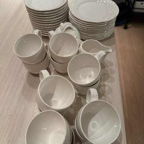 Porsgrund Bogstad hvite kaffe/espressokopper m/skål.
