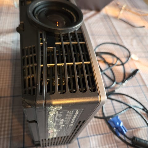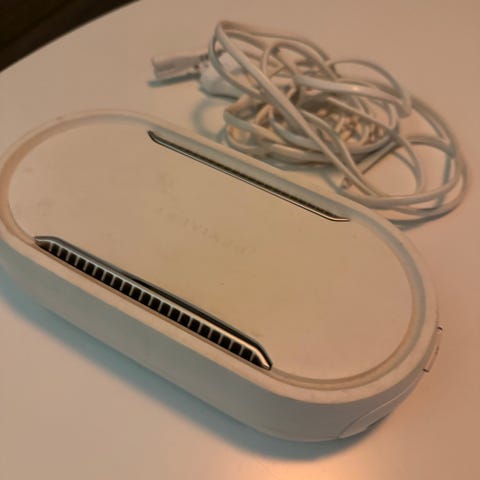 Batteriet trenger ikke å skiftes ut når det er tomt. Projektoren har et innebygd oppladbart 2000 mAh litiumbatteri som kan lades ved hjelp av den medfølgende mikro-USB-kabelen. Etter 3–4 timers lading er batteriet fullt og nattlampen kan brukes i omtrent 2–3 timer. Dette gjelder ved full effekt. Ved lavere effekt lyser lampen lengre.