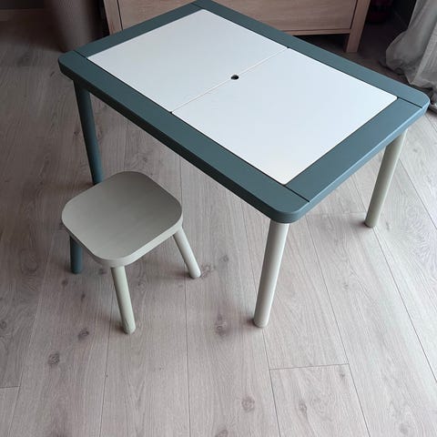 Perfekt for små barn å sitte ved, som vil leke, tegne eller lage ting, eller til å dekke opp til en koselig piknik i hagen.