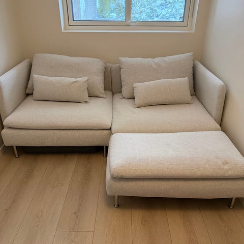 Kjempe grei hvit brukt sofa fra Ikea i tre deler selges. Kan bygge den litt som en vil med de tre delenw.