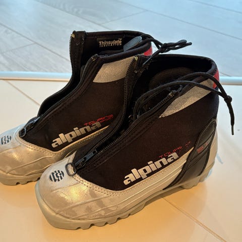 Alpina skisko for barn i størrelse 32. Pent brukte. Hentes på Tveit.