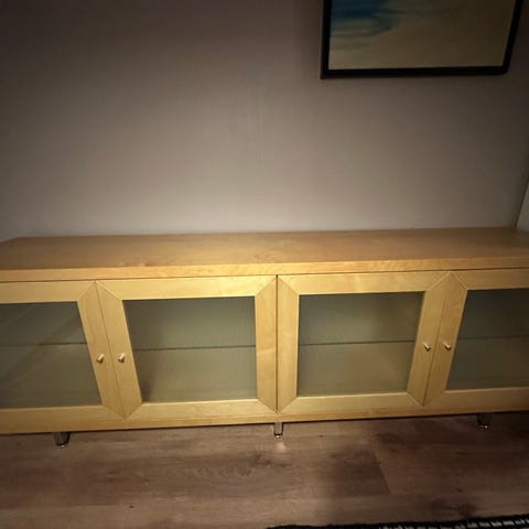 IKEA Bestå hvit skjenk/kommode med 6 skuffer og glassplate på toppen. Består av to seksjoner som er satt sammen (dvs. de fire skuffene til høyre er en del og de to til venstre er annen del). I god stand!