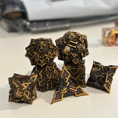 Terning boks av tre for rollespill/ dungeons and dragons. Passer standard størrelse på terninger og plass til alle typer. Har rom for 9 terninger. Holder seg lukket ved hjelp av magneter gjemt inni boksen.