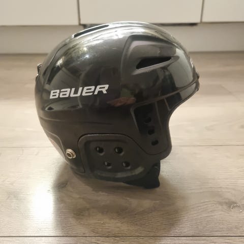 Bauer ishockeyhjelm for barn. Usikker på størrelse, tipper 50-55. For små barns. Hjelmen er laget for ishockey og gir beskyttelse under skøytesport. Må hentes i Trondheim