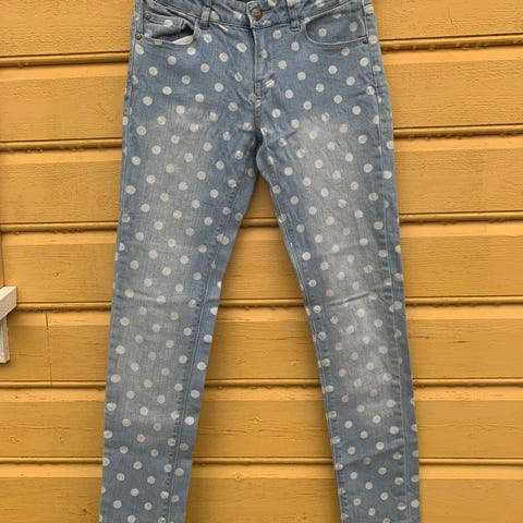 Lindex bukse i denim for jenter, størrelse 158, i blå farge. Laget av denimmateriale.