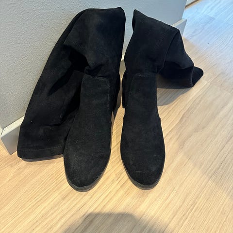 Kne høye svarte støvletter