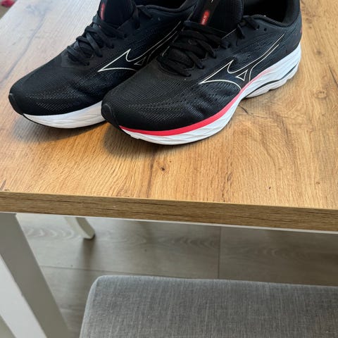 Mizuno løpesko i størrelse 46,5 og er kun brukt to ganger på mølle. Selges da pga de er litt for store for meg.