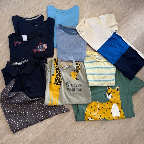 4 T-skjorte, 2 genser, 2 shorts.