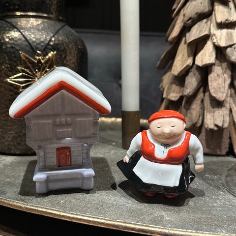 Stabbur, nisser på kjelke og nissepar selges