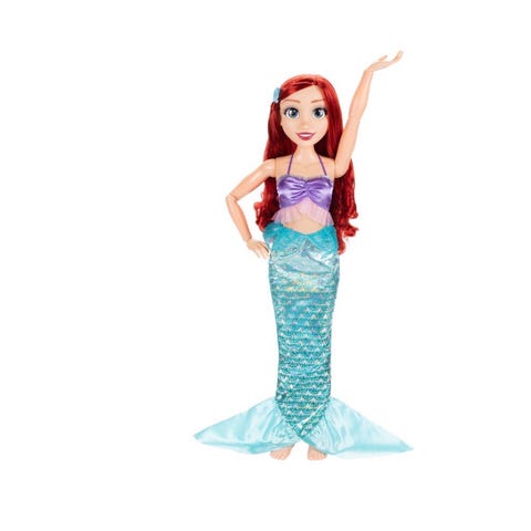 Disney Ariel dukke med langt rødt hår og havfruekjole i blått og lilla. Dukken er designet som karakteren Ariel fra Disney-filmen, med detaljer som havfruehale og topp. Passer som leketøy for barn. Ny pris 999kr.