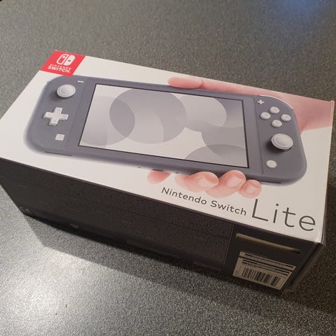 Nintendo Switch Lite konsoll i turkis farge. Bærbar spillkonsoll med integrerte kontroller og skjerm. Designet for håndholdt bruk.