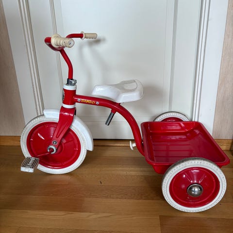 Barnesykkel med 10 tommers hjul i rosa og blå farger. Egnet for små barn som lærer å balansere og sykle.