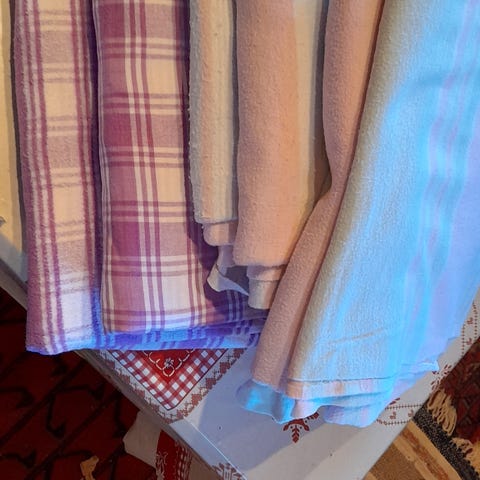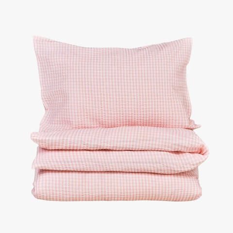 2 rød-rutete sengesett (200 cm lengde) og 1 sengesett (220 cm) i julerød farge.