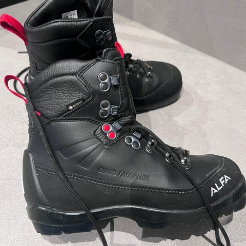 Solid og stødig Alfa Skagen perform skisko i svart skinn for dame. Støvlene er solide, har snøring med metallhemper og forsterket hæl- og tåparti. Passer til binding Rottefella explore. Fin støvel til fjellski.