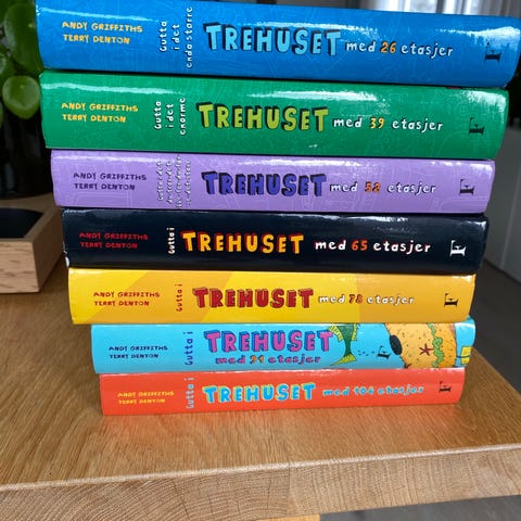 André Bjerke Gutta i trehuset bokserie består av tre bøker: 'Gutta i trehuset med 13 etasjer', 'Gutta i det enda større trehuset med 26 etasjer' og 'Gutta i ditt-du-tror-det-ikke-finnes-størst-trehuset med 52 etasjer'. Bøkene er illustrert av Terry Denton og er barnebøker som følger guttene og deres eventyr i trehus med forskjellige antall etasjer.