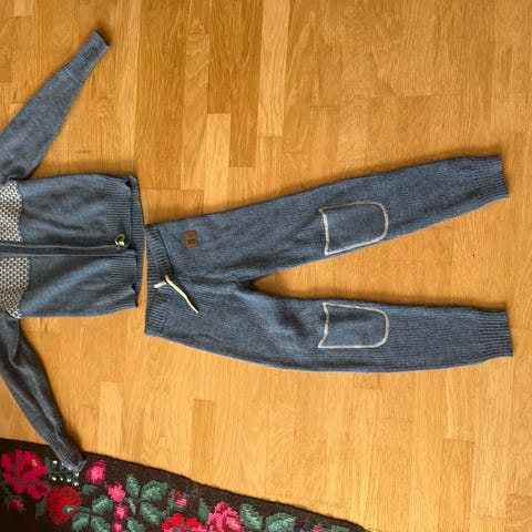 Kattnakken barnebukse i størrelse 128, grønn farge, laget av angoraull. Passer for både gutter og jenter. Buksen har forsterkninger på knærne i kontrastfarge.