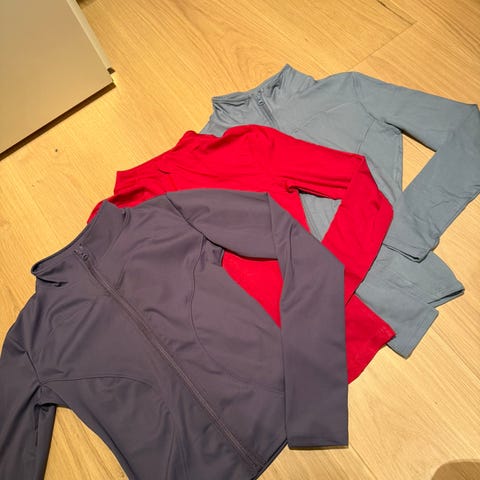 Pent brukte treningsjakker og tights selges samlet