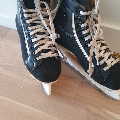 Barneskøyte i størrelse 39 til salgs. Skøyten har svart farge med hvite detaljer. Må hentes.