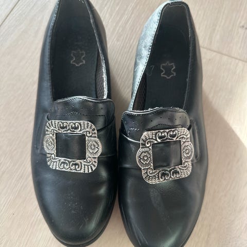 Pent brukt, men begge sko har striper,riper. Kan nok lett fikses med skokrem. Gode på foten