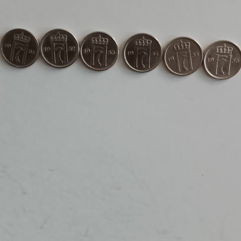 Div. eldre norske mynter, 1 kr. 50 øre. 25 øre. 10 øre. Myntene er fra 1920 tallet, 1930 tallet, 1940 tallet og 1950 tallet. Myntene er litt støvete og skitne, litt slitasje på enkelte, men ser ut for å være stort sett i bra stand. Selges til høystbydende. Ta kontakt ved interesse.