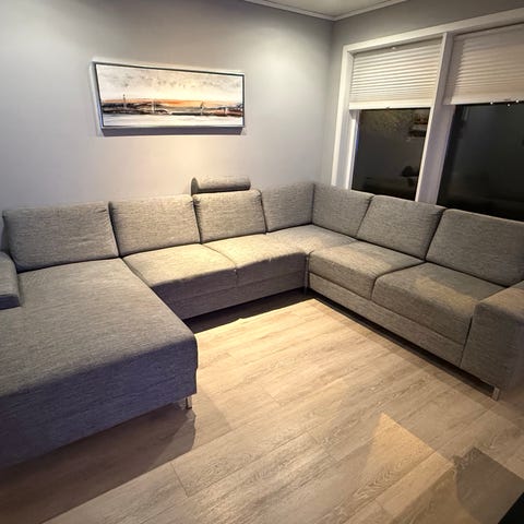 Lite brukt hjørne sofa med en arm