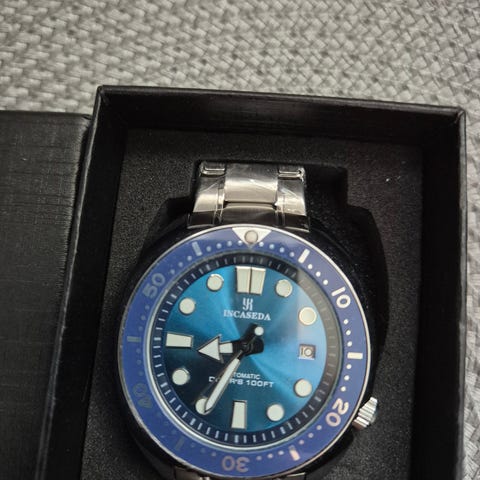 Pent brukt Parnis chronograph med automatisk urverk, diameter 38mm + krone på stål lenke. Dette er en homage til Rolex sin daytona med panda skive, kun klokke (ingen box, papirer eller ledd). Brukt av mann som er ca 19cm rundt håndleddet.