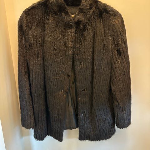 Selger en flott og velholdt ekte minkpels i klassisk brun farge. Jakken har et tidløst snitt med ¾-lange ermer og behagelig passform. Pelsen er tett, myk og jevn, uten synlige skader eller slitasje.