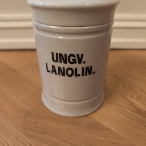 Har flere forskjellige apotek krukker i glass og porselen