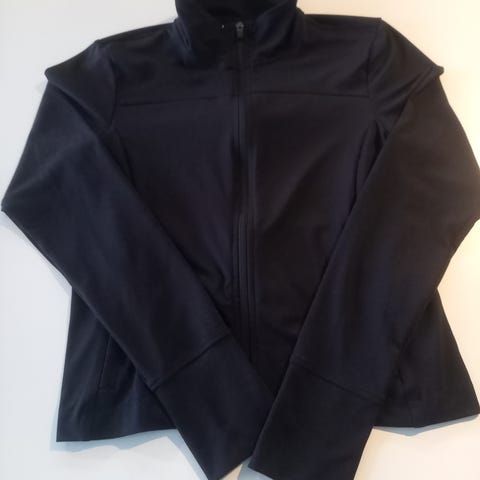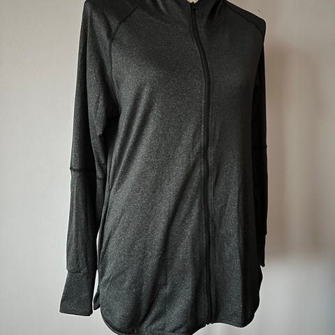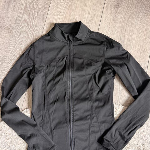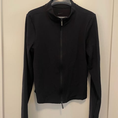 Gina Tricot treningsjakke for kvinner i størrelse M. Jakken er svart og egnet for fitnessaktiviteter. Den har lange ermer og glidelås foran, og er laget av materialer tilpasset trening.